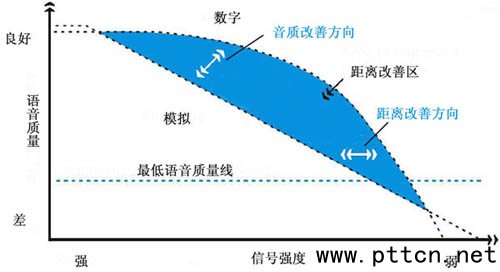 圖1 DMR的信號流程 通信設(shè)備的工作頻率規(guī)定為(30~1000)MHz; DMR協(xié)議包括免執(zhí)照的階段Ⅰ,持執(zhí)照的階段Ⅱ和階段Ⅲ的工作模式,而商業(yè)應(yīng)用集中在階段Ⅱ和階段Ⅲ. 二、DMR協(xié)議的三個(gè)階段是怎樣的? 階段Ⅰ:設(shè)備工作在直通模式(即對講機(jī)通信模式),不必配備基礎(chǔ)設(shè)施,免執(zhí)照即可使用; 階段Ⅱ:系統(tǒng)持照工作,直通或利用中繼通信; 階段Ⅲ:工作在持照集群狀態(tài),由基站控制器自動控制工作。 三、為什么要用DMR? 模擬通信的技術(shù)已達(dá)到頂峰,技術(shù)上的一些限制無法突破,例如:1、電池使用時(shí)間;2、音質(zhì);3、安全;4、頻譜效能;5、數(shù)據(jù)集成的應(yīng)用。 關(guān)于數(shù)據(jù)集成與應(yīng)用,可以舉一例子說明,在模擬機(jī)上要傳送語音與模擬信號是不可能的,但在數(shù)字機(jī)上傳送語音與模擬信號則可以實(shí)現(xiàn)。因?yàn)槔脭?shù)字技術(shù),語音信號可轉(zhuǎn)換為數(shù)字信號傳輸,也就是說,語音和數(shù)據(jù)都能被轉(zhuǎn)換為數(shù)字信號,并一起發(fā)送。在接收端,語音和數(shù)據(jù)被分開,并單獨(dú)進(jìn)行解碼。 美洲、歐洲、亞洲等國家已發(fā)布相應(yīng)法規(guī),要求專業(yè)通信設(shè)備的信道帶寬大于25kHz,而DMR為窄帶通信,正好符合這個(gè)要求; 12.5kHz的信道容量將由此加倍增加。 與12.5kHz的模擬系統(tǒng)頻譜特性基本一樣; 數(shù)據(jù)應(yīng)用容易; 靈活進(jìn)行語音和數(shù)據(jù)通信,在TDMA兩時(shí)隙下兩路通信時(shí)數(shù)據(jù)速率成倍增加; 先進(jìn)的控制特性; 標(biāo)準(zhǔn)開放。 四、DMR對音質(zhì)與距離的改善明顯嗎? 如圖2所示