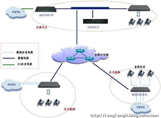 實(shí)現(xiàn)效果 在華夏人壽的內(nèi)部IP電話系統(tǒng)改造完成后,對(duì)電話系統(tǒng)使用有了全新的感覺(jué): 1) 全國(guó)所有電話統(tǒng)一5位編號(hào),內(nèi)部撥打5位小號(hào)就可實(shí)現(xiàn)通話,無(wú)論被叫在哪,均完全免費(fèi); 2) 外界打入華夏人壽時(shí),可以就近撥打其分支機(jī)構(gòu)的總機(jī)號(hào)碼,轉(zhuǎn)接分機(jī)時(shí)輸入統(tǒng)一編號(hào)的5位小號(hào),即可轉(zhuǎn)接到相應(yīng)分機(jī),完全不必關(guān)心被叫分機(jī)實(shí)際位置; 3) 華夏人壽往外撥打PSTN電話時(shí),可以從內(nèi)部迂回到被叫區(qū)域出局,實(shí)現(xiàn)“長(zhǎng)途變市話”,這種迂回能力是可以靈活設(shè)置的,不想迂回時(shí)也可以; 4) 對(duì)于改造的直線電話,相當(dāng)于“一機(jī)雙號(hào)”,PSTN大號(hào)和內(nèi)部IP小號(hào)均可呼通;往外打時(shí),也有兩套撥號(hào)方式;原有PSTN直線電話的功能沒(méi)有任何影響; 5) 集團(tuán)內(nèi)部發(fā)送傳真免費(fèi); 6) 實(shí)現(xiàn)以各單位名稱為歡迎詞的語(yǔ)音彩玲功能,單位可自己定制; 詳情請(qǐng)聯(lián)系:大唐高鴻上海辦事處,康先生,13817742696 qq:69630718