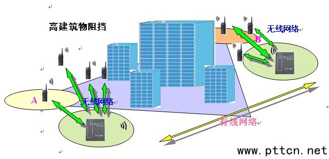 其三,因單個建筑物建筑面積太大,形成常規(guī)無線信號“大屏風(fēng)”狀況,造成如圖A、B兩部分或多部分大面積信號盲區(qū),致使部分以及整個建筑群內(nèi)無法進行常規(guī)的無線通訊。針對這一狀況,無線信號轉(zhuǎn)發(fā)器就可以承載兩部分無限盲區(qū)的信息交換,A區(qū)常規(guī)無線設(shè)備發(fā)起呼叫,被同區(qū)無線信號轉(zhuǎn)發(fā)器收到,轉(zhuǎn)發(fā)器內(nèi)部處理單元迅速轉(zhuǎn)換壓縮通過有線傳送給B區(qū)轉(zhuǎn)發(fā)器,經(jīng)過B區(qū)轉(zhuǎn)發(fā)器場強測算,判斷出本地場強不足,則迅速處理并轉(zhuǎn)發(fā)有線網(wǎng)絡(luò)傳送的數(shù)據(jù)。同理,逆向過程與之相同,實現(xiàn)盲區(qū)之間相互通訊。通過這一方案,無線信號覆蓋了由于建筑物過大而阻斷的無線信號盲區(qū)。 另外,針對管理部門人員管理的需求,鑫瑞明通訊使用自主研發(fā)的軟件程序無線錄音監(jiān)控系統(tǒng)和威泰克斯對講機自帶身份碼識別系統(tǒng),可以實現(xiàn)管理部門對人員的實時監(jiān)控管理要求。因此,為保安、物業(yè)等部門配備了威泰克斯VX-428手臺50部。VX-428小巧、堅固、輕便,發(fā)射功率大(5W), 并且自帶身份碼識別系統(tǒng),正好符合本項目要求。此外,VX-428擁有2000mAh大容量鋰電池,可實現(xiàn)超長待機時間,再加上其超高的性價比,使VX-428成為此次項目保安、物業(yè)使用的最佳選擇。 功能實現(xiàn)與優(yōu)勢:優(yōu)化設(shè)備組合,滿足用戶需求 本著低成本、高服務(wù)和名產(chǎn)品、低價格的原則,北京鑫瑞明通訊電子有限公司希望以最合適的設(shè)備組合實現(xiàn)最高功能化和集成化,滿足用戶的需求。 組網(wǎng)方式: 中心工作頻段為400-470MHz,系統(tǒng)由主控中繼臺、VX-428對講機、220V-13.8V電源、雙工器、功率放大系統(tǒng)、天饋線系統(tǒng)、避雷器等組成。威泰克斯VXR-9000中繼臺輸出功率為50/45/25W,信號可調(diào)整,不干擾周邊單位,可解決不同頻段對講機系統(tǒng)的通信,做到了收發(fā)異頻,可兼容市面上大部分廠家的對講機及設(shè)備,有效節(jié)約成本。且VXR-9000可24小時常年使用,無需人工操作及保養(yǎng),方面后期使用。 系統(tǒng)功能實現(xiàn): A. 中繼臺及鏈路臺安裝位于地下一層弱電豎井內(nèi)或選擇較適宜的安裝位置; B. 饋線延弱電線槽進行布置,嚴(yán)格按照綜合布線的施工標(biāo)準(zhǔn)布置。樓頂天線嚴(yán)格按照抗風(fēng)標(biāo)準(zhǔn)設(shè)計和安裝,保證天線穩(wěn)固;