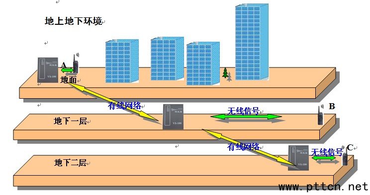 主頁(http://www.130131.com):威泰克斯助力國際公寓實現(xiàn)無線信號地上地下全覆蓋 客戶概況 工程名稱 - 北京某國際公寓無線通訊系統(tǒng)覆蓋項目 建設(shè)單位 - 北京某國際公寓 應(yīng)用行業(yè) - 公寓安保 主要益處 - 實現(xiàn)地面和地下建筑的通信覆蓋 - 實現(xiàn)建筑內(nèi)強電間、弱電間的通信覆蓋 - 解決各部門日常溝通管理的難題 項目背景 隨著城市人口的增多,城市建筑向上向下要空間,樓層越建越高,諸多建筑的地下人防建筑延伸到了地下三、四層,實時的信息溝通面臨挑戰(zhàn)。對講機無線通信系統(tǒng),作為現(xiàn)代通信設(shè)備及手段,是強化項目管理、提高工作效率、有效解決溝通不暢和管理手段單一等問題的“利器”。并且,它能保證工作人員在各種復(fù)雜的環(huán)境中,通過對講機實現(xiàn)正常聯(lián)絡(luò)、暢通指揮。威泰克斯合作伙伴北京鑫瑞明通訊電子有限公司(以下簡稱“鑫瑞明通訊”)利用威泰克斯VXR-9000中繼臺及威泰克斯VX-428對講機,通過有線與無線相結(jié)合,各個擊破地面到地下四層無信號、高建筑物信號阻擋等問題,成功實現(xiàn)北京某國際公寓各部門有效溝通。 客戶挑戰(zhàn):人防建筑深入地下四層,高層建筑阻擋通信 北京某國際公寓園區(qū)為多建筑設(shè)計,分為多個區(qū),主建筑共4棟,每棟包括地面18層及地下人防建筑四層,均屬鋼筋混凝土結(jié)構(gòu)。目前園區(qū)內(nèi)主要采用移動、聯(lián)通、固話等通信系統(tǒng)以及部分質(zhì)量不夠令人滿意的對講機產(chǎn)品,進行各部門的溝通管理。 該國際公寓樓內(nèi)結(jié)構(gòu)復(fù)雜,普通的無線通信系統(tǒng)無法滿足用戶需求。首先,保安部門所設(shè)計的特殊保安點如地下室、人防工事等地點需要做到信號覆蓋、無盲點;因其人防建筑已到地下四層,普通無線系統(tǒng)無法實現(xiàn)信號的有效覆蓋,這是重點更是難點。其次,由工程部管理的每棟大樓存在很多強電、弱電等硬件設(shè)施,也要考慮到強電間、弱電間和電機房的信號覆蓋。此外,公寓采用集群建筑方式,單一建筑物建筑面積過大,易造成信號阻礙,不能實現(xiàn)有效溝通。 正因為在溝通、聯(lián)系、管理等方面有諸多阻礙,急需一套能加強各點之間的聯(lián)系與管理的無線覆蓋系統(tǒng),不僅可以進行單呼、群呼,還能實現(xiàn)無線監(jiān)控錄音等,實現(xiàn)無線電信號對園區(qū)內(nèi)地面建筑和地下建筑的全面覆蓋,使得園區(qū)的內(nèi)部管理、物業(yè)使用和維護可以更加順暢。 解決方案:量身定制,有效全覆蓋 與該國際公寓溝通后,鑫瑞明通訊充分了解到了對方的需求和面臨的困難。在威泰克斯的大力支持下,鑫瑞明通訊決定以威泰克斯對講機及中繼臺為主體,采用無線中繼臺轉(zhuǎn)發(fā)以及天線與電纜相結(jié)合的方法,依據(jù)400MHz頻段進行設(shè)計,以實現(xiàn)無線對講信號覆蓋。鑫瑞明通訊計劃為該國際公寓量身定制一套無線電對講覆蓋系統(tǒng),通過系統(tǒng)設(shè)計使信號在大樓的公共部位和人員經(jīng);顒訁^(qū)域有效地覆蓋,以達(dá)到信號清晰、覆蓋均勻、穩(wěn)定可靠的效果。 如何 “量身定制”?首先,由于常規(guī)無線電臺發(fā)射功率小,以及建筑網(wǎng)絡(luò)(鋼筋、金屬大梁等)屏蔽,無法在使用區(qū)域內(nèi)實現(xiàn)地上地下全方位信號覆蓋,這樣地下車庫、餐廳等功能區(qū)不能很好地與地面部門進行無線通訊。該國際公寓的地下建筑深入地下四層,若不借助其他設(shè)備,地上地下無線信號無法全方位覆蓋。以地下兩層建筑為例,如下圖,對于無線信號來講建筑層把無線信號分成了A、B、C三個信號盲區(qū),所以特別使用威泰克斯VX-418開發(fā)改造的VS-100無線信號轉(zhuǎn)發(fā)器來進行信號覆蓋,在無線信號盲區(qū)內(nèi)設(shè)計轉(zhuǎn)發(fā)器個數(shù)及安裝位置,VS-100無線信號轉(zhuǎn)發(fā)器主要工作在信號盲區(qū)范圍及信號傳輸距離遠(yuǎn)的無線環(huán)境當(dāng)中。同時,準(zhǔn)備兩臺VX-428手持臺,調(diào)到已寫入轉(zhuǎn)發(fā)器的頻率,在不同區(qū)域測試,以檢測是否存在信號盲區(qū),以便將無線信號轉(zhuǎn)發(fā)器安裝在最適合的位置,實現(xiàn)信號無盲區(qū)覆蓋。對于地下三層和地下四層,也采用同樣的安裝模式,并與整個系統(tǒng)形成一體,從而有效實現(xiàn)了地下一到四層與地面部門的有效通訊。