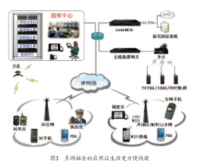 圖2 PDT數字集群的快速響應大大提高了公安系統(tǒng)的執(zhí)警效率 ◆ PTT:PTT集群系統(tǒng) (一鍵通Push To Talk) ,是基于移動公眾網(GSM和CDMA)的語音通訊業(yè)務,用戶可以像使用對講機一樣,一對一、一對多通話。本技術由美國移動運營商Nextel于1993年提出,2010年我國電信推出了“天翼對講”即屬這種通信,2012年這項業(yè)務逐漸被客戶接受。 ◆ PPDR:Public protection and Disaster relief ,公共保護和搶險救災通信。是國際電信聯(lián)盟無線電通信部門(ITU-R)協(xié)調世界各國、各地區(qū)無線電通信管理部門研究用于公共保護和救災的無線電通信的需求和技術的重要議題。PPDR是應急通信的最重要環(huán)節(jié),是實現政府應急預案的重要保障,主要靠無線電寬帶通信。 4、新時期專業(yè)通信的特征是多種技術和應用的有機融合 1) 多種技術融合 現代通信往往是多種技術的綜合應用,達到優(yōu)勢互補、相得益彰的效果。一項通信標準可能采用TDMA和FDMA接入,信道在傳輸時可能用多種信道編碼。為了兼容,多模多頻終端備受歡迎。數字對講機機中,為了數模兼通,采用數模自動識別技術讓用戶體驗到高科技帶來的種種方便。能兼容多種標準、多種聲碼器的數字對講機單芯片已經面世。 2) 公網和專網融合 人們對公網、專網等的分工在新技術時期已有所變化,專網有集群調度功能,公網也可以具備調度功能,前面介紹的PTT一鍵通,就是利用公網的集群調度系統(tǒng)。人們希望對講機能和手機通信,也希望手機能用來對講。 3) 窄帶與寬帶融合 單獨的窄帶通信應用局限性大,寬帶通信的圖像傳輸在公安執(zhí)法、應急場合經常應用,對講機除對講外還要完成寬帶傳輸功能。近來,對講機往LTE方向發(fā)展多受關注,這是用戶希望達到寬帶應用的數字境界。 4) 光與電融合 傳統(tǒng)的集群系統(tǒng)中光通信用得有限,寬帶光通信技術,正帶動網絡速率飛速提升,帶給人們無所不在的“極速體驗”。光纖通信傳輸衰減小、容量大、不受外界干擾、保密性好,可用于大容量超寬帶的通信。例如,通過PON光纖網絡實現油井區(qū)的有線網絡覆蓋,在井點使用分光器引出網絡光信號,配備在線光網絡單元,連接現場遠程終端設備和視頻監(jiān)控設備,實現現場生產數據和視頻的回傳,這是華為在油田中采取的通信方案。光傳輸在專網的應用不斷擴大,因為光纖通信有它不可替代的作用。 5)多種網絡的融合 多網融合是未來通信的發(fā)展方向,基于IP化的通信能使各種網絡互聯(lián);利用集群網關也可使各系統(tǒng)互通。下圖是捷思銳公司的一個系統(tǒng)應用圖,為了完成多媒體的功能,IP網絡、公網、窄帶集群、寬帶集群、衛(wèi)星通信完全融合在一起。