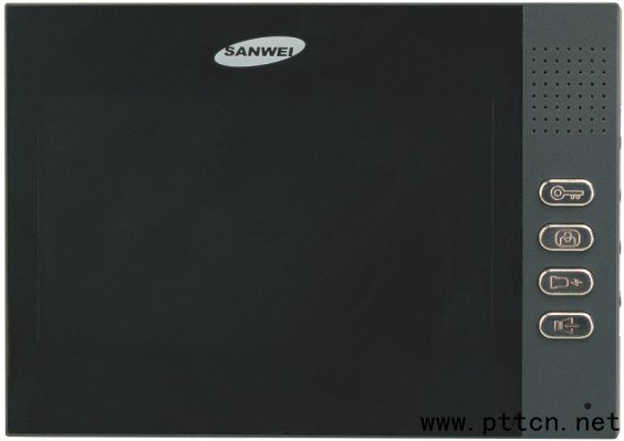 主頁(http://www.130131.com):彩色7寸可視分機(jī) 產(chǎn)品綜述 1、訪客在單元門主機(jī)上呼叫分機(jī),分機(jī)有“叮咚”聲提示,主人拿起聽筒可與訪客對(duì)講,同時(shí)分機(jī)能顯示訪客圖像,按“開鎖”鍵可開啟單元門的電鎖 2、待機(jī)時(shí),按“監(jiān)視”鍵可監(jiān)視單元門口的情況 3、摘機(jī)按“呼叫”鍵可呼叫管理中心 4、采用軟編碼方式,每戶均可設(shè)置不同的開鎖密碼 5、 4-8防區(qū)報(bào)警設(shè)置, 參數(shù) 圖片