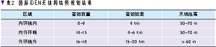 綜合容量分析和覆蓋分析的結(jié)果,在滿(mǎn)足雙重需求的情況下,得到國(guó)脈iDEN無(wú)線(xiàn)網(wǎng)絡(luò)預(yù)規(guī)劃的結(jié)果(如表2所示)。