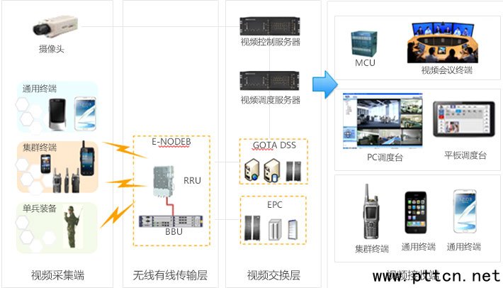 支持多種類終端(集群終端、通用終端、單兵視頻裝置等)視頻回傳