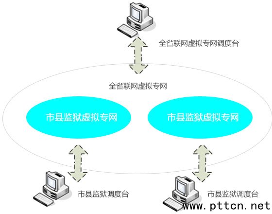 省監(jiān)獄管理局下還有很多市縣監(jiān)獄。各市縣監(jiān)獄也有自己的組織機構(gòu),如辦公室、獄政處、生活處等。各市縣監(jiān)獄和省監(jiān)獄管理局一樣,建設(shè)自己的集群虛擬專網(wǎng),獨立管理和調(diào)度本監(jiān)獄的用戶和群組,根據(jù)自己的組織機構(gòu)情況,把同一部門或者團隊的用戶編成同一個群組。