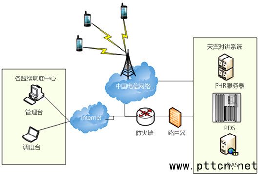 GoTa系統(tǒng)可以依托電信網(wǎng)絡(luò),購機入電信網(wǎng),全省監(jiān)獄通過寬帶接入電信GoTa天翼對講系統(tǒng)。中國電信為監(jiān)獄分配集團管理員帳號,只有監(jiān)獄管理員可以通過管理臺管理本集團用戶,實現(xiàn)監(jiān)獄內(nèi)部的調(diào)度管理。