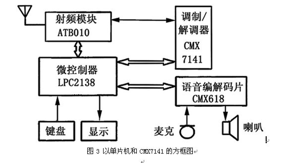 主頁(http://www.130131.com):數(shù)字對講機主流方案探索(三) 以單片機為核心處理器的dPMR對講機方案(CMX618+CMX7141) ●工作原理 發(fā)射時,麥克送來的模擬語音經(jīng)CMX618內(nèi)部進行增益調(diào)節(jié),A/D轉(zhuǎn)換和壓縮處理,然后通過SPI(串行外圍設(shè)備接口)進入CMX7141基帶處理器,在微控制器LPC2138的控制和管理下經(jīng)CMX7141芯片內(nèi)部進行信道編碼,dPMR協(xié)議棧打包,數(shù)字濾波以及4FSK調(diào)制,調(diào)制編碼后的語音數(shù)據(jù)經(jīng)CMX7141芯片的MOD1/2管腳分別輸出給外部的發(fā)射VCO和壓控溫補參考時鐘,經(jīng)兩點調(diào)制輸出射頻載波給發(fā)射功放,并到天線輸出。 接收時,CMX7141對基于超外差射頻接收模塊送來的4FSK解調(diào)信號在微控制器LPC2138的控制和管理下進行4FSK解調(diào),dPMR拆包,信道解碼,最終得到語音編碼數(shù)據(jù),經(jīng)SPI串口送給CMX618進行語音解壓縮并恢復(fù)語音信號。 ●關(guān)鍵器件 語音編解碼片CMX618是CML微電子(新加坡)私人有限公司的產(chǎn)品,芯片由音頻壓縮/解壓器、RALCWI編解碼器、前向糾錯編解碼器和其他特殊功能模塊幾部分組成。 RALCWI是一種魯棒的先進的復(fù)雜性波形插入技術(shù),與其他語音編解碼技術(shù)不同,它使用獨有的信號分解和參數(shù)編碼方法,可確保在較高的壓縮率下有較好的語音質(zhì)量。 在聲碼器中,采用RALCWI技術(shù)實現(xiàn)的語音質(zhì)量與編碼速率在4kbps以上的標準聲碼器話音質(zhì)量相當。 ●方案點評 本方案優(yōu)點是開發(fā)時的靈活性高,模擬與數(shù)字可雙模設(shè)計,且同一個硬件開發(fā)平臺能滿足不同的數(shù)字對講機標準,支持多種語音聲碼器,射頻的接收靈敏度可做得較高達到-118dBm(誤碼率為1%時)。發(fā)射功率0.5W,功率容易提升。 缺點是前期的軟件開發(fā)成本高并有一定難度,射頻模塊ATB010只支持dPMR的EN301,166標準,不支持DMR.