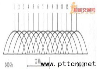 2.3.2 干擾分析與解決探討 由于在軌道交通中信號系統(tǒng)的特殊性和重要性,PIS系統(tǒng)一般采取兩種方式規(guī)避與信號系統(tǒng)的沖突,一種是PIS采用工作在5.8GHz頻段的802.11a技術(shù),另一種則是PIS采用802.11b/g技術(shù),并與信號系統(tǒng)的頻點錯開使用。目前這兩種方式在軌道交通已建和在建的項目中均有使用。 方式一:采用5.8GHz頻段的802.11a技術(shù),遠離了信號系統(tǒng)的2.4GHz頻段,單獨設(shè)置一套PIS系統(tǒng)自己的車地?zé)o線網(wǎng)絡(luò),不會對信號系統(tǒng)產(chǎn)生干擾,同時也減少了與信號系統(tǒng)的接口問題,便于工程的實施。采用這種方式的優(yōu)點是兩系統(tǒng)之間的接口簡單,工程實施性相對容易。缺點是5.8GHz的頻段需要向無線電管理委員會申請許可,每年需要交納一定的頻率使用費。 方式二:對PIS系統(tǒng)的車地?zé)o線網(wǎng)絡(luò)帶寬需求分析可知,802.11b無法滿足PIS系統(tǒng)至少應(yīng)該在13MHz以上的帶寬需求,因此在軌道交通項目中通常采用802.11g技術(shù),與信號CBTC系統(tǒng)一樣工作在2.4GHz頻段。采用這種方式的優(yōu)點是不需要申請許可,技術(shù)相對成熟,缺點是增加了兩系統(tǒng)之間工程接口的難度,需要協(xié)調(diào)頻點使用并解決與信號系統(tǒng)的無線信號干擾問題。 如圖3所示,國內(nèi)規(guī)定可以使用的2.4GHz頻段上只有3個不重疊的頻點。系統(tǒng)工作在這三個頻點上時,相互之間沒有干擾可以同時運行。