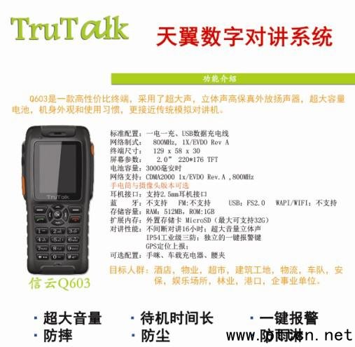 (7)手機對講,完美融合:一部終端,即是手機,又是對講機 。