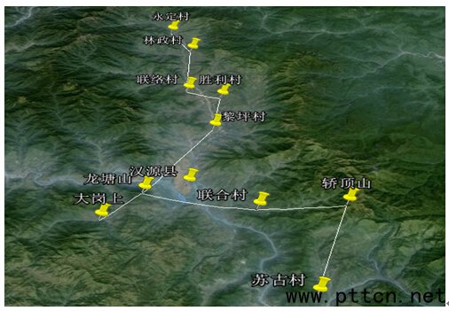 漢源縣配置10套固定數(shù)字中繼站,通過無線鏈路設(shè)備實現(xiàn)各中繼站之間的互聯(lián)。具體點位分布如圖: