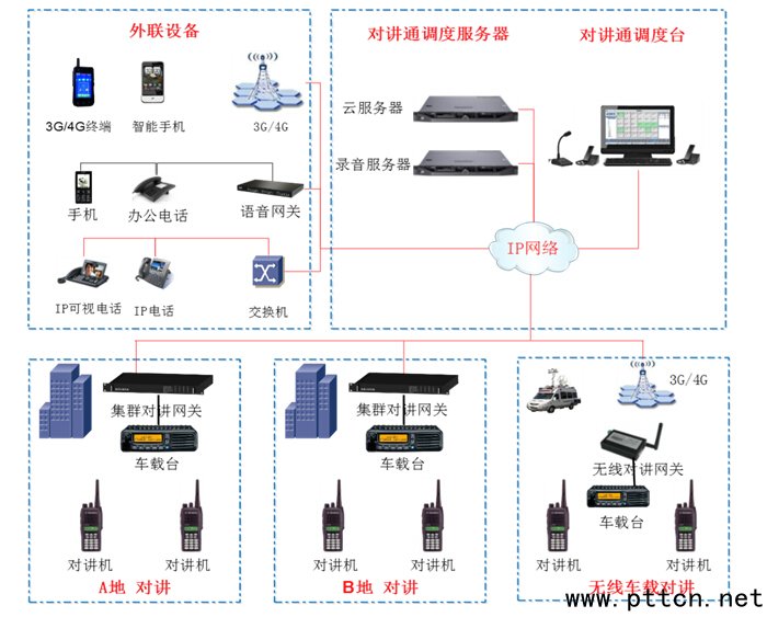 主頁(http://www.130131.com):中電智通:基于云平臺全I(xiàn)P構(gòu)架的對講通系統(tǒng) 系統(tǒng)概述 對講通系統(tǒng)是基于云平臺的全I(xiàn)P構(gòu)架系統(tǒng),可輕松實(shí)現(xiàn)融合對講,將傳統(tǒng)集群對講、短波電臺、固話、IP電話、普通手機(jī)、3G/4G智能終端實(shí)現(xiàn)統(tǒng)一調(diào)度;可通過3G/4G網(wǎng)絡(luò)快速實(shí)現(xiàn)系統(tǒng)廣域覆蓋和部署;系統(tǒng)具有良好的安全性和可靠性,在異地異網(wǎng)情況下實(shí)現(xiàn)全部用戶終端的統(tǒng)一管理;系統(tǒng)支持視頻對講調(diào)度功能擴(kuò)展。