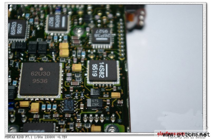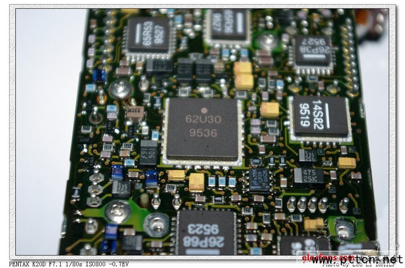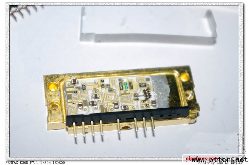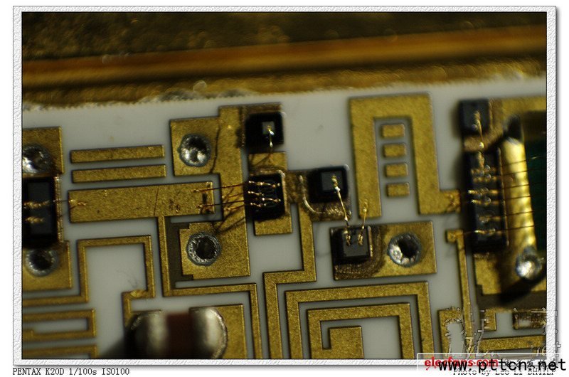 全是裸硅片加金線,下面繼續科普,在高頻信號電路中很多新片都是沒有外部封裝的,直接用金線連接外部電路,這樣做的好處主要是可以降低封裝電容和分布電感,因為信號頻率一旦高了之后,原本絕緣的東西就變得不再絕緣了,而是形成了電容從而使信號通過電容耦合到別處,另外對于高頻 過長的引線、引腳都會形成電感從而破壞原有的設計參數。所以高頻信號處理經常使用沒有封裝的裸硅片,另外在功率放大電路中不加封裝也更有利于散熱。 科普結束,基本模塊也都介紹完了,下面看看空主板 看看 所有模塊都是可以拔下來的……