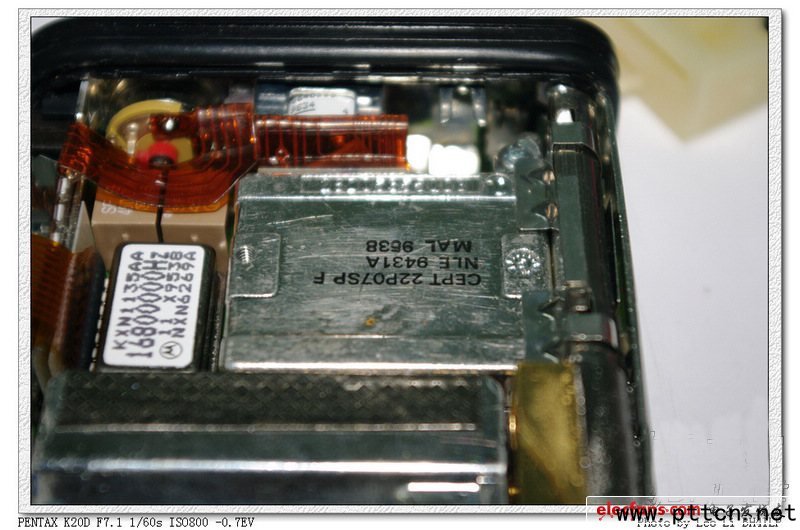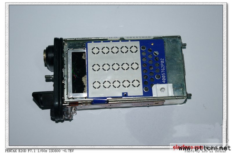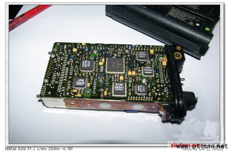 背面看看 可以看到雖然脫掉了外套,但是里面還穿著內衣,真正的精華不是輕易能看見的 哈哈 下面的觸點跟外殼里面的柔性電路板通信, 整個外殼是全封閉的 雖然不是像R刀和八重洲vx 6r vx 7r那樣的潛水級防水,但是這個防水級別從各個角度用水龍頭沖洗是絕對不會有一滴水進入機器內部的,可見軍用東西就是不一樣。話說6R的防水性能也不怎么樣,我的6r讓我扔到游泳池底下照樣還是從背面標簽下面的孔里進水了……7r的防水性能還不如6r呢……所以日本設備也就是功能花哨,真正實在的還是老美。不過話說回來,價格也不在一個數量級上,當年的軍刀價格可是上千美元的東西。