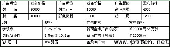 (會刊規(guī)格為130MM×210MM,廣告費一律預收一次性付清;因故不能參展企業(yè),可直接選擇會刊及展場廣告宣傳) 。