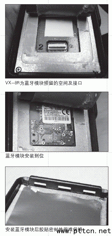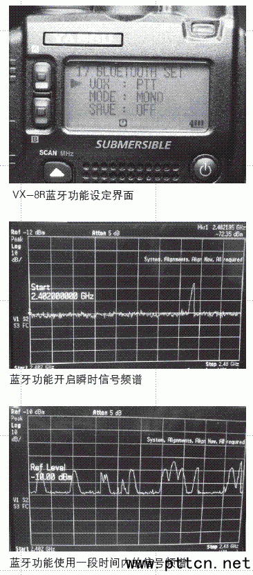 整個安裝過程非常簡單,但我們發(fā)現(xiàn)由于考慮到防水的因素,8R的膠貼非常厚實(shí),四周所用密封固定膠粘性很強(qiáng),要開啟膠貼并不十分容易,用力過大極易對膠貼造成損傷。當(dāng)藍(lán)牙模塊安裝到位后重新封閉膠貼很難做到原先的完美復(fù)原,比取下7R機(jī)后的塑料蓋板要難得多。 縱觀8R的防水結(jié)構(gòu),8R的電池周邊并沒有防水O圈,防水主要靠機(jī)器本身的水密性,其中機(jī)背后的膠貼起很大的作用。這點(diǎn)與7R不同,7R的電池外部有防水O圈,對電池倉起水密的作用,7R機(jī)后的塑料蓋板并不承擔(dān)水密的任務(wù)。我們在浸水試驗(yàn)中8R背部與電池結(jié)合面是有水侵入的,除了外框全靠膠貼密封。因此,我們安裝藍(lán)牙模塊破壞了膠皮水密性,也就破壞了8R整體的防水特性。(注:據(jù)悉目前在國內(nèi)銷售的VX-8R包裝中已經(jīng)提供備用密封膠貼,安裝藍(lán)牙組件和擴(kuò)頻的朋友就不用發(fā)愁保持密封性能的問題了。)通過多臺機(jī)器的拆裝,我們發(fā)現(xiàn)用熱風(fēng)焊臺對膠貼進(jìn)行預(yù)熱會有助拆裝,同時(shí)如果你想保持8R的防水特性,可以在重新合上膠貼的時(shí)候使用新的防水膠。在此友情提示,如果你對8R的防水特性非?粗,請慎裝藍(lán)牙模塊,或者安裝后重新加強(qiáng)膠貼部分的水密性能。當(dāng)然還有一種不破壞膠貼、完美安裝藍(lán)牙模塊的方法,就是完全拆開機(jī)器安裝,問題是完美拆機(jī)也需要很多技巧和工具,首次拆機(jī)很難面面俱到。VX-8R成功安裝硬件藍(lán)牙模塊后,開機(jī)界面在屏幕的下方就會顯示藍(lán)牙標(biāo)記。在使用中,如果啟用藍(lán)牙傳輸,在屏幕下方同樣會出現(xiàn)藍(lán)牙標(biāo)記。使用藍(lán)牙傳輸就像使用普通外接耳機(jī)一樣,會切斷機(jī)內(nèi)揚(yáng)聲器工作。對藍(lán)牙模塊的設(shè)定比較簡單,安裝藍(lán)牙模塊后,8R菜單中的16和17號菜單會變得可用。16號菜單為BLUETOOTHP-CODE,用于設(shè)定藍(lán)牙設(shè)備配對密碼和搜索配對藍(lán)牙耳機(jī)。8R的初始藍(lán)牙配對密碼為6111,當(dāng)然我們可以方便地設(shè)置為常用的0000。按住V/M鍵就開始配對,整個配對過程需要20~30s,配對成功與否會有文字顯示,但不像移動電話那樣,會顯示藍(lán)牙耳機(jī)的型號。17號菜單為BLUETOOTHSET,用于對藍(lán)牙功能的設(shè)定,具體分為VOX、MODE、SAVE、POWR四個項(xiàng)目。VOX為聲控功能,有PTT、VOXHIGH、VOXLOW、OFF四個選項(xiàng),分別表示用手動PTT鍵控制發(fā)射、高靈敏度聲控發(fā)射、低靈敏度聲控發(fā)射、關(guān)閉。如果你使用不具備PTT功能的普通藍(lán)牙耳機(jī),就可以考慮使用VOX功能控制發(fā)射;如果你使用普通藍(lán)牙耳機(jī)只做監(jiān)聽用途,那么使用OFF設(shè)置。8R具備廣播接收功能,所以利用藍(lán)牙耳機(jī)可以聽廣播。MODE提供立體聲和單聲道選擇。SAVE為節(jié)能模式。POWR為開啟關(guān)閉設(shè)定。 8R與第三方藍(lán)牙耳機(jī)的兼容性和使用效果是大家所關(guān)心的。普通用于移動電話的藍(lán)牙耳機(jī),由于沒有設(shè)計(jì)PTT鍵,所以自然不可能有PTT功能,但作為接收功能的耳機(jī)或者利用8R機(jī)器上的PTT以及8R提供的藍(lán)牙聲控功能,一樣可以控制發(fā)射。我們試驗(yàn)了多種品牌、檔次的藍(lán)牙耳機(jī),總體而言,BU-1藍(lán)牙模塊的兼容性還是很高的,但不是100%做到通用。 我們測試的絕大多數(shù)耳機(jī)都能與BU-1藍(lán)牙模塊配對成功,但有少數(shù)藍(lán)牙耳機(jī)配對不成功,8R也將音頻切換到藍(lán)牙輸出,但藍(lán)牙耳機(jī)就是沒有聲音輸出,所以建議大家在選配第三方耳機(jī)時(shí)最好當(dāng)場試驗(yàn)。除了藍(lán)牙耳機(jī),大部分藍(lán)牙車載免提裝置同樣可以用,這樣用戶就能將8R靠近窗戶放置,以利于信號接收。然后通過藍(lán)牙傳輸?shù)杰囕d免提裝置上,利用車載免提裝置的擴(kuò)音器有非常好的音頻輸出效果。需要注意的是,8R的藍(lán)牙輸出距離并不遠(yuǎn),要控制好藍(lán)牙裝置與8R的位置,否則由于藍(lán)牙信號不好,信噪比會下降嚴(yán)重。8R與藍(lán)牙耳機(jī)的兼容性與藍(lán)牙耳機(jī)的版本并沒有直接的關(guān)系,我們用老款的索愛HBH-300藍(lán)牙耳機(jī)一樣可以很好地與8R匹配。我們使用市價(jià)不到50元的仿索愛HBH-631藍(lán)牙耳機(jī),連接和使用完全正常。經(jīng)試驗(yàn)MOTOROLA的H605的使用效果也很好,對于喜歡掛耳耳機(jī)的朋友很適合。我們還使用了支持多設(shè)備連接的藍(lán)螞蟻Z9耳機(jī)來匹配8R對講機(jī)和移動電話,也完全正常。雖然大部分第三方藍(lán)牙耳機(jī)都與8R配對成功,也可以正常使用,但兼容性還是有差異,有的藍(lán)牙耳機(jī)在8R主機(jī)重新開機(jī)后不容易與之自動連接,經(jīng)常需要再次手動配對,而有的藍(lán)牙耳機(jī)工作起來就十分順暢。這種兼容性與藍(lán)牙耳機(jī)的價(jià)格并沒有直接的關(guān)系,估計(jì)與產(chǎn)品設(shè)計(jì)和所用芯片有關(guān)。 實(shí)際使用效果上,MIC話筒的音質(zhì)與藍(lán)牙耳機(jī)的品質(zhì)特性有關(guān),有些廉價(jià)藍(lán)牙耳機(jī)在安靜的環(huán)境中用用還可以,到了噪聲大的環(huán)境中就很難抑制背景噪聲。通常體積比較大、話筒延伸靠近嘴巴的