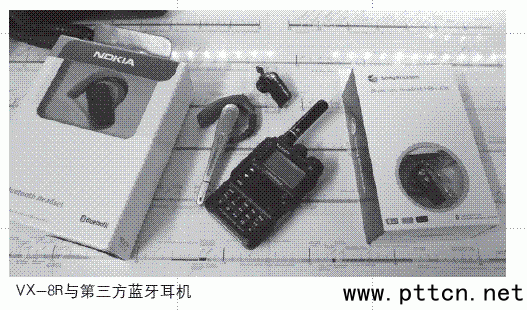 主頁(http://www.130131.com):細(xì)說VX-8R之藍(lán)牙應(yīng)用 YAESU新款上市的VX-8R提供了藍(lán)牙傳輸和APRSGPS傳輸?shù)男绿匦,本文就VX-8R的藍(lán)牙音頻應(yīng)用進(jìn)行比較詳細(xì)的介紹。 VX-8R是業(yè)余電臺界第一部具備內(nèi)置藍(lán)牙功能的手持式對講機(jī)。藍(lán)牙音頻傳輸功能在移動電話上早已被廣泛應(yīng)用,由于其通過無線電波傳輸?shù)姆绞绞沟枚鷻C(jī)擺脫傳統(tǒng)傳輸線的困擾而廣受前衛(wèi)用戶的喜愛。藍(lán)牙在對講機(jī)中的應(yīng)用并不多見,在專業(yè)對講機(jī)上出現(xiàn)過基于藍(lán)牙傳輸?shù)臒o線耳機(jī)話筒組,但由于屬于附加套件,對講機(jī)必須外接藍(lán)牙收發(fā)器多有不便,所以實(shí)際應(yīng)用場合不多。即使在需要隱蔽通話的場合中,由于早期的藍(lán)牙耳機(jī)話筒組需要增加多個充電設(shè)備(適配器、耳機(jī)、掌心PTT都需要獨(dú)立充電),所以大家還是偏向于傳統(tǒng)有線隱蔽耳機(jī)話筒組。