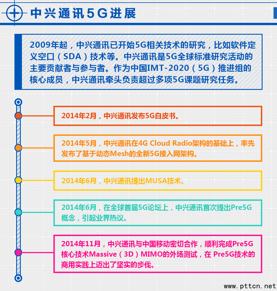 主頁(http://www.130131.com):百家爭鳴5G之中興通訊篇 中興通訊用技術(shù)創(chuàng)新勾畫5G藍(lán)圖——從需求定義到關(guān)鍵技術(shù)路線,5G尚有很多值得探討的問題,業(yè)界認(rèn)為商用將在2020年以后。中興通訊首次提出Pre5G概念,首次把5G技術(shù)提前到了4G時(shí)代,引起業(yè)界巨大反響。
