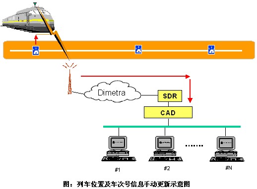 調(diào)度臺與車站值班員之間通話 系統(tǒng)管理員根據(jù)車站所屬的線路對車站調(diào)度員的固定臺預(yù)先編組,車站值班員呼叫調(diào)度臺用TETRA的標(biāo)準(zhǔn)功能就可以完成。 調(diào)度臺呼叫車站值班員可以用TETRA的標(biāo)準(zhǔn)功能完成,也可以通過CAD提供的別名呼叫功能按站名呼叫。 運(yùn)營中的列車司機(jī)與車站值班員之間通話(站車通話) 根據(jù)用戶需求書的要求,機(jī)車司機(jī)只能與行車調(diào)度員通話。因此實(shí)現(xiàn)站車呼叫需要行車調(diào)度員參與其中,調(diào)度臺可以利用“派接”功能,將需要通話的機(jī)車司機(jī)與車站值班員派接在一起,即可實(shí)現(xiàn)兩者之間的相互通話。通話結(jié)束后,需要由調(diào)度員將派接組設(shè)置取消。 對于其他用戶需要與機(jī)車司機(jī)通話的情況,均可按此方式處理。 調(diào)度臺對運(yùn)營中的列車進(jìn)行廣播 有了計(jì)算機(jī)輔助調(diào)度(CAD)子系統(tǒng)和車載臺子系統(tǒng)的互相配合,可以輕易實(shí)現(xiàn)列車廣播功能,包括對某列、某些列或全部列車的旅客進(jìn)行廣播。 為實(shí)現(xiàn)列車廣播功能,通過TETRA短數(shù)據(jù)傳送服務(wù)(SDTS)的支持。在人機(jī)界面(MMI)方面,調(diào)度員僅需按下‘列車廣播’圖標(biāo),然后通過列表選擇需要進(jìn)行呼叫的列車(通過車組號或車次號)并啟動廣播,即可通過麥克對某輛列車進(jìn)行廣播。 調(diào)度員利用通播組呼叫功能即可對所有列車旅客或部分列車進(jìn)行旅客廣播。 維修調(diào)度員與維修人員及其相互之間的通話 維修調(diào)度組的成員也相對固定,系統(tǒng)管理員根據(jù)預(yù)先安排進(jìn)行配置編組,調(diào)度臺呼叫維修調(diào)度組成員時(shí)可以用數(shù)字集群的組呼或單呼功能完成,也可以通過CAD提供的別名呼叫功能按站名呼叫。維修調(diào)度組成員呼叫調(diào)度臺使用數(shù)字集群的組呼或單呼功能完成。 傳送列車數(shù)據(jù)信息 利用摩托羅拉車載臺所提供的SDTS接口,在控制中心計(jì)算機(jī)上可以接收列車運(yùn)行狀態(tài)數(shù)據(jù),如車速、機(jī)車設(shè)備狀態(tài)、列車風(fēng)壓等。在圖示中,列車數(shù)據(jù)采集PC機(jī)由客戶提供,并假定客戶方提供數(shù)據(jù)采集的應(yīng)用軟件。摩托羅拉提供該P(yáng)C機(jī)上用于數(shù)據(jù)傳輸?shù)膽?yīng)用軟件。