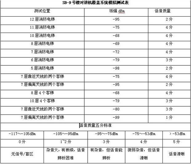 3.6 本次系統(tǒng)設(shè)計(jì)的達(dá)到的覆蓋效果 本次系統(tǒng)設(shè)計(jì)對上海港國際客運(yùn)中心SB-9號樓作完全的覆蓋,主設(shè)備發(fā)射功率在40W,終端設(shè)備發(fā)射功率設(shè)定在3W,整個上海港國際客運(yùn)中心SB-9號樓樓內(nèi)通信的質(zhì)量都達(dá)到話音3分以上標(biāo)準(zhǔn),并無斷續(xù),建筑內(nèi)95%以上的區(qū)域信號場強(qiáng)高于-85dBm,建筑外紅線外100米范圍以外信號場強(qiáng)低于-105dBm,符合當(dāng)?shù)責(zé)o線電管理局對企業(yè)對講機(jī)對外界電磁泄漏的規(guī)定,同時也很好的保證企業(yè)的調(diào)度保密性。