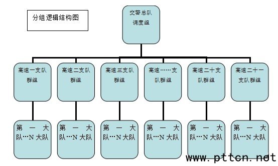 分級指揮調(diào)度需求 « 要求支持多個(gè)、多級指揮中心聯(lián)合監(jiān)控調(diào)度 ---很多時(shí)候,一個(gè)任務(wù)的執(zhí)行過程中,需要在不同地方場合顯示甚至是進(jìn)行包括實(shí)時(shí)對講、位置信息、圖片信息、甚至是視頻信息等內(nèi)容的交互共享。 « 要求支持分級管理調(diào)度 根據(jù)交警總隊(duì)的地區(qū)管轄分級制,系統(tǒng)能支持分級監(jiān)控、調(diào)度。 巡邏車輛監(jiān)控管理 « 要求能夠同時(shí)監(jiān)控調(diào)度指揮大量系統(tǒng)成員與工作車輛 ---執(zhí)行大型、特大任務(wù)時(shí),動(dòng)用警力很多,分布相對又比較集中,指揮中心信息系統(tǒng)要能順暢地處理各種上傳下達(dá)的交互信息。 « 要求能夠同時(shí)監(jiān)控多區(qū)域多事件 ---對同一時(shí)間的不同區(qū)域的多事件,要能同時(shí)監(jiān)看到組員警力的部署情況。 « 能夠?qū)γ舾袇^(qū)域進(jìn)行重點(diǎn)監(jiān)控 ---監(jiān)看多區(qū)域情況時(shí),能重點(diǎn)監(jiān)控某一區(qū)域。 « 要求支持對工作車輛的行駛軌跡、行駛方向、作業(yè)區(qū)域的監(jiān)控管理 ---在日常工作中,通過實(shí)時(shí)定位的方式查看工作車輛是否按規(guī)定路線行駛、是否在規(guī)定區(qū)域作業(yè),且通過監(jiān)控系統(tǒng)后查某個(gè)時(shí)段工作車輛的行駛狀態(tài)、行走路線與方向。 高速公路信息查詢 « 對報(bào)警信息要求快速反應(yīng) ---只有準(zhǔn)確掌握了報(bào)警的位置信息、報(bào)警人的信息、當(dāng)時(shí)報(bào)警地點(diǎn)警力分布情況,才能準(zhǔn)確、高效調(diào)集指揮警務(wù)人員出警,快速到達(dá)現(xiàn)場,做到快速反應(yīng)。 « 事故信息查詢 安全生產(chǎn)信息及事故報(bào)告信息的收集和整理,形成全省交通安全生產(chǎn)事故大信息庫。根據(jù)各單位及企業(yè)不同需求,可提供多種形式的事故信息的查詢和檢查功能,以實(shí)現(xiàn)信息的共享和利用。 « 能高效的為工作車輛指引路線、位置、導(dǎo)航 --當(dāng)工作車輛在外出警時(shí),能將車輛實(shí)時(shí)位置顯示在系統(tǒng)中,特別在高速公路、國道、省道上,無明顯參照物的前提下,通過道路里程標(biāo)識(shí)來為警車導(dǎo)航。 交通事故應(yīng)急處理 « 要求實(shí)時(shí)對講調(diào)度,能實(shí)現(xiàn)跨區(qū)域、大范圍、遠(yuǎn)距離指揮調(diào)度 ---很多時(shí)候執(zhí)行任務(wù)的活動(dòng)范圍,是跨區(qū)域、跨省份的,這種情況下的實(shí)時(shí)對講調(diào)度指揮加直觀的任務(wù)現(xiàn)場位置信息上傳的需求,越來越急迫。 « 要求指揮調(diào)度系統(tǒng)安全、可靠、保密 ---公安的指揮調(diào)度系統(tǒng)的信息可靠、保密、安全的重要性,不言而喻,往往關(guān)系到任務(wù)執(zhí)行的成敗;不安問題來自兩方面:外部的有意侵入、竊聽;內(nèi)部往外的泄露。 « 要求支持多種報(bào)警方式 ---現(xiàn)在的報(bào)警方式多種多樣,有通過對講系統(tǒng)來自現(xiàn)場執(zhí)法隊(duì)伍內(nèi)部的,有來自社會(huì)上群眾的報(bào)警電話,還有來自動(dòng)安防系統(tǒng)的火警,還有來自車輛上比如GPS緊急按鍵等類型的報(bào)警。 二、調(diào)度分組架構(gòu)