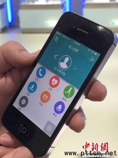 北斗老人手表與手機(jī)APP相連,老人摔倒時(shí),手機(jī)可即時(shí)報(bào)警!≈鞎苑f 攝