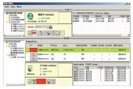 圖3 緊急呼叫中的個(gè)呼面板 5.通訊簿 “組呼面板”和“個(gè)呼面板”左側(cè)為“通訊簿”,采用樹型結(jié)構(gòu)存儲(chǔ)用戶關(guān)心的通話組號碼和無線用戶號碼,用戶選中某個(gè)號碼,即可發(fā)起個(gè)呼或者組呼。支持便捷的查看、增加或刪除通話組成員。 6.動(dòng)態(tài)重組 如果需要?jiǎng)討B(tài)調(diào)整通話組成員,可以通過“組呼通訊簿”或者“通話組監(jiān)視列表”選中某個(gè)通話組,完成成員查看、添加或者刪除操作。系統(tǒng)支持四種方式來快捷添加通話組成員:1)通過其它通話組成員添加;2)通過組織樹圖添加;3)直接輸入無線用戶號碼添加;4)從個(gè)呼通訊簿添加。