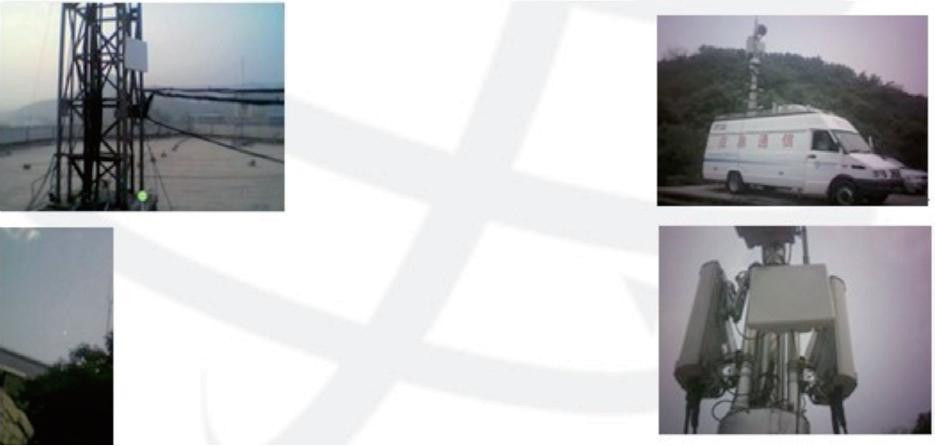 • 示意圖中左端是指揮中心,我們將設(shè)備安裝在樓頂?shù)蔫F塔上; • 右端是人防移動應(yīng)急車,我們把設(shè)備安裝在應(yīng)急車上面升降機(jī)完全升起,大概距離地面8米的高度; • 從圖中可以看到,應(yīng)急車上設(shè)備的高度低于總部機(jī)房樓頂設(shè)備高度,紅色線條模擬的是無線信號起伏; • 無線鏈路完全被地面的起伏和建筑阻擋,成為“完全非視距”。 方案環(huán)境一采用摩托羅拉PTP設(shè)備,在“非視距”情況下PTP的設(shè)備極限通信距離為5公里。 當(dāng)PTP一端設(shè)備架設(shè)到總部,另外一端設(shè)備集成到應(yīng)急通信車時(shí),應(yīng)急通信車?康膱鏊鄶(shù)情況下與總部之間被建筑遮擋,PTP設(shè)備在被建筑物遮擋下,傳輸帶寬會急劇下降,當(dāng)信號衰減到另外一端無法接收時(shí),我們設(shè)備視為中斷。
