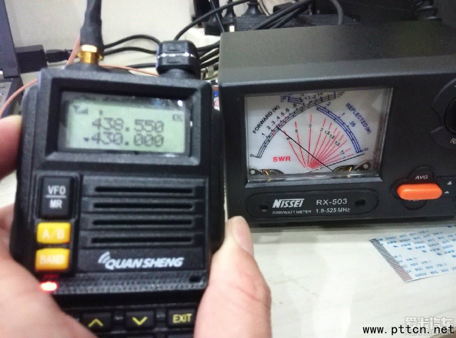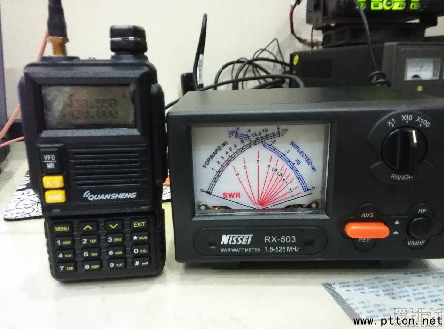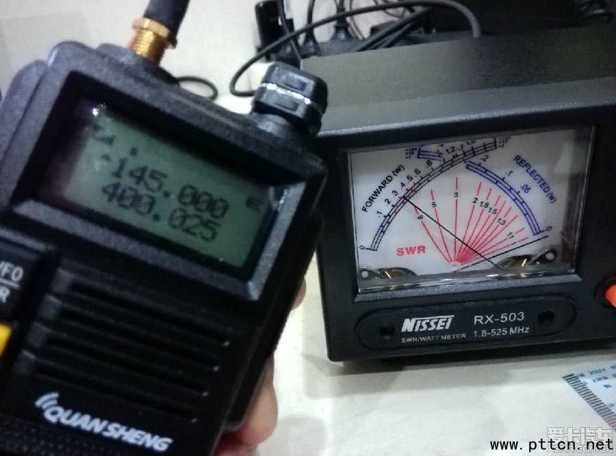 測試時使用納勝RX-503駐波表,可以測駐波及功率。