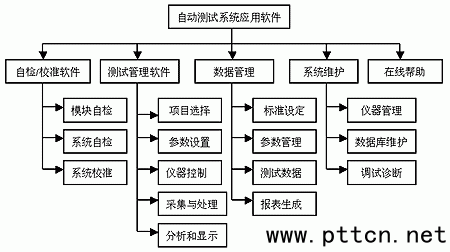 圖1 短波電臺(tái)自動(dòng)測試系統(tǒng)框圖 短波電臺(tái)測試需要使用頻譜分析儀、功率計(jì)和頻率計(jì),需要丈量功率譜、峰值功率、峰值頻率、帶內(nèi)功率、鄰道功率、帶寬、3D譜圖等參數(shù)。我們采用PXI-5620配合使用Spectral Measurements Toolkit實(shí)現(xiàn)。Spectral Measurements Toolkit是一個(gè)頻譜丈量工具包,具有細(xì)化譜分析和頻率搜索能力,并可以進(jìn)行模擬調(diào)制、解調(diào)以及IQ數(shù)字解調(diào)。 PXI-5421配合Modulation Toolkit,在系統(tǒng)中作為射頻信號(hào)發(fā)生器,可以產(chǎn)生各種格式的射頻信號(hào)。由于部分測試項(xiàng)目需要兩路射頻輸進(jìn),系統(tǒng)中配置了2塊。另外配備程控衰減器,對(duì)接收機(jī)輸進(jìn)靈敏度等參數(shù)進(jìn)行測試。Modulation Toolkit是一個(gè)調(diào)制工具包,具有AM、FM、PM模擬調(diào)制模式和FSK、MSK、GMSK、PSK、QAM數(shù)字調(diào)制模式,還具有強(qiáng)大的3D眼圖功能,可以丈量調(diào)制誤差、相位誤差、頻率偏差、誤碼率和并發(fā)定時(shí);還可以對(duì)DC偏置、IQ、增益不平衡、積分傾斜等邊界條件進(jìn)行丈量。 為了產(chǎn)生和丈量音頻信號(hào),系統(tǒng)中配備了一塊PXI-4461高精度音頻信號(hào)采集與產(chǎn)生模塊,它具有兩個(gè)同步采集模擬輸進(jìn)通道和兩個(gè)同步采集模擬輸出通道。該模塊在系統(tǒng)中作為音頻信號(hào)發(fā)生器、音頻電壓表和音頻頻譜分析儀,能完成音頻電壓丈量、音頻頻率丈量、SINAD丈量、SNR丈量、失真度丈量、音頻動(dòng)態(tài)信號(hào)分析、音頻信號(hào)發(fā)生等多種AF測試功能。 為了對(duì)收發(fā)轉(zhuǎn)換時(shí)間、靜噪開啟時(shí)延、靜噪開釋時(shí)延等參數(shù)的測試,以及對(duì)RF和AF動(dòng)態(tài)波形進(jìn)行觀測,系統(tǒng)中配備了PXI-5112高速數(shù)字化儀,它和NI-SCOPE示波器軟件配合工作,在系統(tǒng)中作為示波器使用。 PXI-6259一方面用來對(duì)SCXI機(jī)箱進(jìn)行控制和掃描,另一方面用于系統(tǒng)自檢和狀態(tài)監(jiān)視,同時(shí)利用DIO接口可以連接電臺(tái)控制接口和遠(yuǎn)控接口等,提供通訊的數(shù)字信號(hào),以實(shí)現(xiàn)在全自動(dòng)方式下對(duì)電臺(tái)的自動(dòng)測試控制。 測試規(guī)范中規(guī)定不同的測試項(xiàng)目需要多臺(tái)儀器按規(guī)定的丈量方法進(jìn)行連接,有部分項(xiàng)目需要連接外部的輔助部件,它們涉及射頻、音頻通道特性,為了實(shí)現(xiàn)自動(dòng)選擇測試儀表,設(shè)置工作模式,自動(dòng)進(jìn)行信號(hào)轉(zhuǎn)接和切換,系統(tǒng)中配備了射頻開關(guān)模塊和通用開關(guān)模塊。射頻開關(guān)模塊選用SCXI-1193,SCXI-1193既可以用作多組多路復(fù)用器,也可以作為多組稀疏矩陣開關(guān)使用。其帶寬為500MHz,適合于高頻的測試。 通用開關(guān)模塊選用SCXI-1166,該模塊具有32路開關(guān),適合高電流切換、路由和控制的應(yīng)用。SCXI-1166用于除射頻通道外的其他通道的控制,如音頻通道、發(fā)射保護(hù)、系統(tǒng)供電等。 程控電源選用Agilent公司可編程電源,主要用于給被測電臺(tái)提供電源,同時(shí)實(shí)現(xiàn)負(fù)載功率的測試和保護(hù)。該電源的控制通過GPIB-USB模塊完成。 應(yīng)用軟件構(gòu)成 短波電臺(tái)自動(dòng)測試系統(tǒng)應(yīng)用軟件采用虛擬儀器軟件開發(fā)平臺(tái)LabVIEW,按照用戶技術(shù)要求和GB/T 6933-1995、GB/T 6934-1995中規(guī)定的測試項(xiàng)目和測試方法控制系統(tǒng)硬件,進(jìn)行模式設(shè)置、控制激勵(lì)輸出和采集測試數(shù)據(jù),進(jìn)行處理,得到電臺(tái)的性能指標(biāo),其主要框圖如圖2所示。