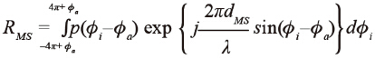 圖3、3GPP SCM UMa 時(shí)延特性 PDP 體現(xiàn)了信號(hào)經(jīng)過(guò)不同傳播路徑后到達(dá)接收機(jī)端時(shí),接收機(jī)能辨析出的不同時(shí)延情況,同時(shí)其時(shí)延擴(kuò)展反映了信道的頻率選擇性衰落帶寬,或者說(shuō)決定了信道的相關(guān)性帶寬。 1.3.2、多普勒譜 多普勒頻移反映了因接收機(jī)相對(duì)于來(lái)波的移動(dòng)方向與速度對(duì)所接收信號(hào)在時(shí)域衰落過(guò)程中受到的影響。1968 年R.H.Clarke 在參考文獻(xiàn)[16] 對(duì)此有詳細(xì)的闡述。所謂經(jīng)典多普勒譜,即指Clarke 模型的“U”型譜。而在MIMO 信道模型中,由于每一徑是由多根子徑(Sub-Path)構(gòu)成,每根子徑都會(huì)對(duì)接收機(jī)信號(hào)的多普勒譜有所貢獻(xiàn),最終信道的多普勒譜將與各徑到達(dá)角及其角度擴(kuò)展有關(guān)。 信道模型中的多普勒譜實(shí)際上還反映了信道衰落的快慢,即快衰落或慢衰落,描述了信道的在時(shí)域的演進(jìn)特性,同時(shí)決定了信道的相關(guān)性時(shí)間。 1.3.3 空間相關(guān)性 空間相關(guān)性集中體現(xiàn)了接收端天線單元之間的相關(guān)性,這種空域相關(guān)性在CDL 中描述的更為具體。在大多數(shù)基于簇的CDL 信道模型當(dāng)中,每根徑實(shí)際上已被簇替代,每一簇都具有獨(dú)立統(tǒng)一的到達(dá)角(AoA),而每一簇中各子徑具有細(xì)微不同的到達(dá)角偏移,如前文所述,子徑在統(tǒng)計(jì)上的不同到達(dá)角的概率分布效應(yīng)由信道模型中的角度功率譜PAS 來(lái)體現(xiàn),依據(jù)實(shí)際測(cè)試的結(jié)果,PAS 的形狀一般是靠近該簇AoA 時(shí)的能量(或說(shuō)概率)大,遠(yuǎn)離AoA 時(shí)則小,SCM 模型中一種廣為使用的分布模型是拉普拉斯分布,意味著各子徑到達(dá)角在統(tǒng)計(jì)上的能量分布是以AoA 為中心對(duì)稱的雙邊指數(shù)衰落。 參考[17] 基于PAS 與子徑的到達(dá)角,Spirent 的Doug Reed 在參考文獻(xiàn)[18] 中給出了一個(gè)關(guān)于兩個(gè)虛擬接收天線單元之間空間相關(guān)性的數(shù)學(xué)表達(dá)式是: