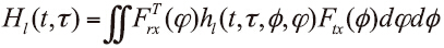 它是由收發(fā)天線陣列的響應(yīng)矩陣Frx(RX),F(xiàn)tx(TX) 及沖擊響應(yīng)矩陣hl 組成: