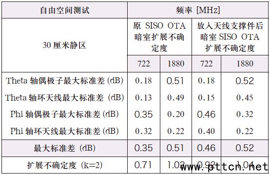 表2、SISO 暗室的紋波測(cè)試比對(duì)驗(yàn)證(30cm 靜區(qū))