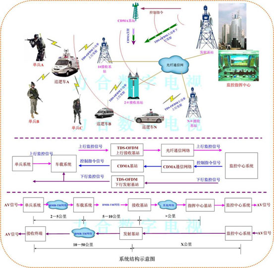 一、突發(fā)公共事件背景 突發(fā)公共事件(Public Emergency)特指政府公共管理領(lǐng)域所遭遇的緊急情況,必須迅速作出決斷、并需要付出沉重代價才能擺脫困境的一系列事件。突發(fā)公共事件的表現(xiàn)形式多種多樣,涉及面十分廣泛。我國每年因危害公共安全的突發(fā)公共事件造成的非正常死亡超過20萬人,傷殘超過300萬人,經(jīng)濟損失計6500億人民幣,約占GDP總量的6%。近年來,重大事故平均每天7.2起;特大事故每周2.5起;特別重大事故每月達(dá)1.2起。公共衛(wèi)生安全隱患猛增,食物中毒事件時有發(fā)生。在社會安全領(lǐng)域,09年近新疆“7.5”事件一例,就造成156人死亡,1080人受傷;260余輛機動車被燒被砸,其中11輛是警車;209家店鋪、門面和2幢樓房被焚毀,過火面積達(dá)56850平方米;直接經(jīng)濟損失巨大。違法犯罪活動日趨動態(tài)化、組織化、職業(yè)化、智能化。我國嚴(yán)峻的公共安全形勢影響著國民經(jīng)濟全面協(xié)調(diào)可持續(xù)發(fā)展,并給人民生命和財產(chǎn)帶來重大損失。 突發(fā)公共事件的應(yīng)急是指當(dāng)社會出現(xiàn)突發(fā)公共事件時,政府采取有效措施進(jìn)行快速應(yīng)對,以使突發(fā)公共事件對社會經(jīng)濟的影響程度降到最低限度。對突發(fā)公共事件進(jìn)行有效的應(yīng)急處理是各級政府的重要職責(zé),應(yīng)急的反應(yīng)速度和應(yīng)急的處理效率既是反映各級政府履行政府職能的水平和質(zhì)量的綜合指標(biāo),也是體現(xiàn)對國家、對人民群眾生命財產(chǎn)安全是否高度盡責(zé)的重要方面。政府履行應(yīng)急職能必須依托應(yīng)急指揮系統(tǒng)來實現(xiàn),因此,加強政府應(yīng)急指揮系統(tǒng)的建設(shè)在提升政府應(yīng)急處理能力方面起著關(guān)鍵性的作用!蹲髠鳌酚醒裕“居安思危,思則有備,備則無患。” 隨著911、SARS、禽流感等突發(fā)事件的發(fā)生,國內(nèi)外掀起了“城市應(yīng)急指揮聯(lián)動系統(tǒng)”建設(shè)的新高潮。 二、系統(tǒng)介紹 深圳力合視達(dá)科技有限公司開發(fā)的LH-MV8802E無線數(shù)字移動應(yīng)急指揮系統(tǒng)是集固定監(jiān)控、移動實時監(jiān)控、視頻廣播、文件傳送、指揮為一體的綜合解決方案。該系統(tǒng)能夠?qū)崿F(xiàn)各種環(huán)境條件下對高質(zhì)量圖像的發(fā)送和接收,并且各類固定及移動終端可以接收圖片等各類文件信息及數(shù)據(jù),能夠極大的提高各種行業(yè)在緊急狀態(tài)下的處理效率。 本系統(tǒng)最大的特點是可高速移動傳輸音視頻信息。在8M帶寬內(nèi)最大可有效傳輸33Mbps數(shù)據(jù)率,編碼碼率可以低至100~200kbps,可多機位拍攝,復(fù)用后同時傳送。系統(tǒng)可在UHF頻段或指定頻段的任意頻點發(fā)射,一體型發(fā)射系統(tǒng)功率1~10W,依據(jù)接收天線位置、高度的不同,可覆蓋半徑1~20公里的區(qū)域。如果利用多點信號分集接收技術(shù),并輔以點對點微波和光纖傳輸技術(shù),則傳輸覆蓋面更是可以進(jìn)一步擴大至城市規(guī)模。復(fù)合型發(fā)射系統(tǒng)功率達(dá)到100W以上,可覆蓋半徑20公里以上的區(qū)域。一體型適用于上行發(fā)射,復(fù)合型適用于下行大區(qū)域覆蓋。系統(tǒng)支持高速移動傳輸數(shù)字視頻圖像,發(fā)射車時速可高達(dá)上百公里,性能超過國外同類型產(chǎn)品。 綜合以上所述,LH-MV8802E無線數(shù)字移動應(yīng)急指揮系統(tǒng)的主要優(yōu)點有: 高移動性和靈活性;可以實現(xiàn)高質(zhì)量實時圖像在移動發(fā)射到固定接收、固定 發(fā)射到移動接收,以及移動發(fā)射到移動接收等各種應(yīng)用環(huán)境。 高清晰效果;由于傳輸全過程采用數(shù)字信號,地面數(shù)字電視傳輸方式,圖像清晰度高、音頻效果好。 實時性;實時圖像傳輸,時延小,接收質(zhì)量高。 抗干擾性能好、移動性能優(yōu)異;采用多載波調(diào)制技術(shù)和自主創(chuàng)新的同步技術(shù),可靠 克服了各種多徑干擾,可以實現(xiàn)在城市樓群中移動載體的高質(zhì)量、非視距發(fā)射和接收。 靈活的加密手段;內(nèi)容的加密處理非常便利,既可以利用地面數(shù)字電視標(biāo)準(zhǔn)自行定義專有傳輸參數(shù)來加密(一般用于上行信號加密),也可以采用成熟的數(shù)字電視CA技術(shù)(一般用于下行信號加密)。 三、技術(shù)特點 力合LH-MV8802E無線數(shù)字移動應(yīng)急指揮系統(tǒng)的核心技術(shù)TDS-OFDM是一種地面數(shù)字電視調(diào)制技術(shù),采用了PN 序列填充的時域同步正交頻分復(fù)用多載波調(diào)制方法。這種獨創(chuàng)的先進(jìn)技術(shù)有機地將信號在時域的同步和頻域的傳輸結(jié)合起來,在頻域傳送有效載荷,在時域通過擴頻技術(shù)傳送控制信號以便進(jìn)行同步、信道估計, 實現(xiàn)快速碼字捕獲和穩(wěn)健的同步跟蹤性能。在技術(shù)上,針對插入強功率同步導(dǎo)頻的傳統(tǒng)OFDM 調(diào)制方式,在傳輸系統(tǒng)的有效性、可靠性都受損失的缺陷,發(fā)明了基于PN 序列擴頻技術(shù)的高保護(hù)同步傳輸技術(shù)和巧妙利用OFDM 保護(hù)間隔的填充技術(shù),同時提高了傳輸系統(tǒng)的頻譜利用效率和抗噪聲干擾性能。針對地面數(shù)字電視廣播現(xiàn)有傳輸標(biāo)準(zhǔn)的信道估計迭代過程較長的