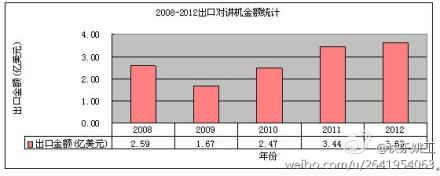 主頁(http://www.130131.com):2012年我國出口對講機數(shù)量近2000萬臺 2012年我國出口對講機數(shù)量為:1837.5540萬臺,總金額為:3.63億美元;現(xiàn)把最近5年對講機出口情況公布如下:![]() (中國集群通信網(wǎng) | 責任編輯:陳曉亮) |