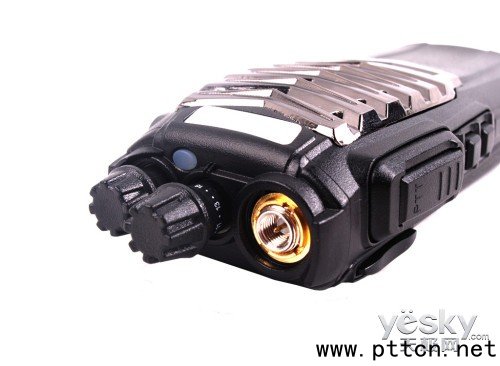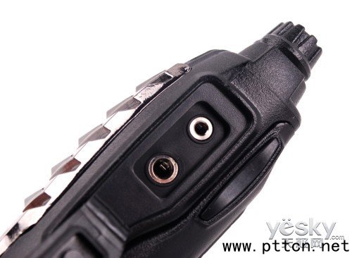 CS-800的機(jī)身并沒有數(shù)字按鍵和顯示屏 雖然是一款全頻段產(chǎn)品,但是馳迅達(dá)CS-800機(jī)身正面沒有按鍵鍵盤和液晶顯示屏,只在機(jī)身上面設(shè)計(jì)了一個(gè)頻道調(diào)節(jié)旋鈕,所以CS-800不支持一些例如頻率調(diào)節(jié)、跳頻等功能,但是卻簡化了操作難度。此外CS-800在操作時(shí)還具有中英雙語的男聲語音提示,非常人性化! 2馳迅達(dá)CS-800全頻段對講機(jī)外觀細(xì)節(jié)介紹(一)