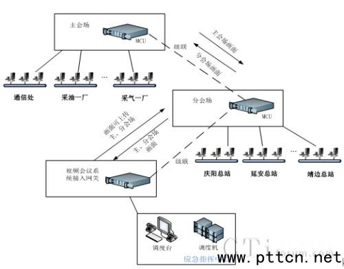 視頻監(jiān)控融合組網(wǎng)圖 應(yīng)急指揮系統(tǒng)通過視頻編解碼網(wǎng)關(guān)將音視頻媒體流接入,并經(jīng)過定制化二次開發(fā)把語音、視頻完善融合、不僅通過調(diào)度臺可直接調(diào)看各個攝像頭的圖像,還可直接與視頻中心建立語音互動。并可對云臺進行控制,實現(xiàn)全方位的監(jiān)控操作。 【視頻會議融合】 應(yīng)急指揮綜合平臺平臺應(yīng)能實現(xiàn)緊急視頻會議功能?稍谡{(diào)度臺上一鍵即可召集各部門領(lǐng)導參加緊急視頻會議,無論領(lǐng)導是在辦公室、酒店、還是在家里,只要能夠連接到網(wǎng)絡(luò),即可通過電腦參加視頻會議,如無電腦,也可通過各種通話終端參加語音會議。 采用系統(tǒng)內(nèi)置的視頻會議系統(tǒng)接入網(wǎng)關(guān),與現(xiàn)有的視頻會議系統(tǒng)做IP層應(yīng)用上下級級聯(lián),形成互聯(lián)互通的應(yīng)用模式。能夠讓值班人員在辦公室就了解到上級的精神,將現(xiàn)場的圖像,通過級聯(lián)的手段接入到平臺中,在現(xiàn)場與后方形成互動化的指揮方式。 實現(xiàn)互聯(lián)互通后,可以隨時接收來自于現(xiàn)有視頻會議系統(tǒng)主會場的視頻和語音,同時可以將本地的音視頻畫面上傳到會議中去。 另外,系統(tǒng)采用的是國際通用的協(xié)議標準,有利于未來對接其他的視頻會議系統(tǒng),有利于系統(tǒng)的擴展和投資的保護。