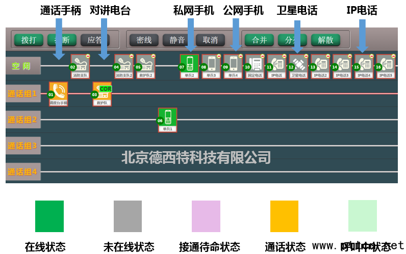 針對目前這種情況,特別應(yīng)急行業(yè),德西特指揮調(diào)度系統(tǒng)打破常規(guī),吸收國際主流應(yīng)急調(diào)度指揮系統(tǒng)操作模式,采用全新拖拽式操作步驟,以多方通話、會議通話為核心。