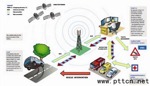 主頁(http://www.130131.com):車載應急通信技術與測試方法介紹 1 引言 近幾年,擴展汽車通信功能應用的車聯網話題急速升溫,汽車產業與通信信息產業的結合是通信業發展新的契機,也為汽車行業帶來了高新信息技術應用的無限前景,同時也存在跨行業合作的復雜性。目前,車聯通信系統的應用遍布汽車駕駛、多媒體娛樂、交通信息交互、應急救援的通信應用等。本文從車載應急通信系統出發,從車載應急通信的技術特性、國內外標準、檢測產業進展等方面進行分析介紹。 車載應急通信系統主要功能模塊包括自動緊急呼叫通信功能和定位功能兩個模塊。在發生嚴重交通事故后,即使司機和乘客失去知覺不能撥打電話,這一系統通過對碰撞力度的感應觸發,基于以上兩個通信功能模塊,能夠自動撥叫統一的應急救援平臺的緊急救援電話,并且同時報告事故車輛所處的位置信息(見圖1)。該系統對應急通信的處理具有自動化和及時的特性,使得緊急事故的信息發送快速,同時因自動包含事發位置信息,可大大縮短救援時間。歐盟委員會曾在致力推動該系統在歐洲的普遍使用的政策研究中,提到采用這套系統,有可能使發生道路交通事故后的救援時間節省40%以上。