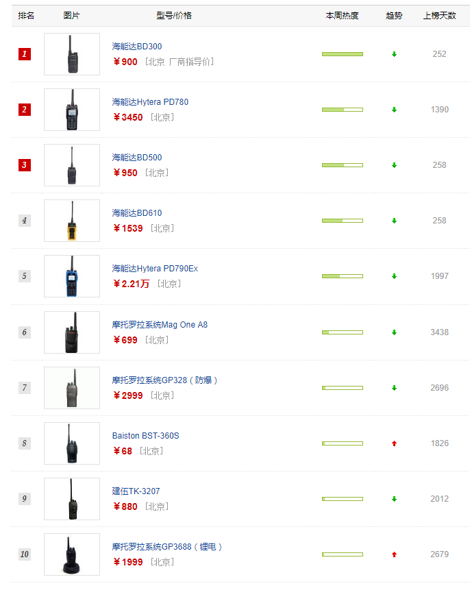 主頁(yè)(http://www.130131.com):2017年6月熱門(mén)對(duì)講機(jī)月度排行榜