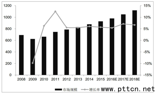 主頁(http://www.130131.com):2017年中國專網(wǎng)通信市場規(guī)模分析 根據(jù)統(tǒng)計,2015年專網(wǎng)通信市場規(guī)模已達930億元人民幣,預(yù)計未來3年復(fù)合增長率在5%-10%。認(rèn)為未來在寬窄帶融合的大趨勢下(寬帶要貴得多),全球?qū)I(yè)無線通信的市場空間有望擴大數(shù)倍。 全球無線專網(wǎng)通信市場規(guī)模及增速
