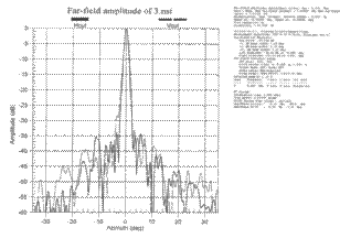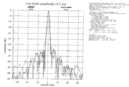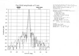 由于采用恒達(dá)公司發(fā)明的“五極化狀態(tài)轉(zhuǎn)換開關(guān)組件”,大大的縮小了饋線的排布體積,同時也更好的解決了兩路信號傳輸?shù)姆、相位一致性問題,使得操作更加簡便。 5.) 一個C波段五極化天線饋線系統(tǒng)的實例 已經(jīng)研制出一臺C波段五極化天線饋線系統(tǒng)的實例,該天線饋線的技術(shù)指標(biāo)和實測數(shù)據(jù)記錄如表1。實測天線方向圖如圖2 所示。本文所用符號說明也在表1中列出。 表一 系統(tǒng)參數(shù) | 指標(biāo)要求 | 天線參數(shù) | 指標(biāo)要求 | 實測結(jié)果(F-;F0; F+) | 工作頻率 | C波段 | 天線口徑 | ≥3.2m | 3.2m | 峰值功率容量 | ≥300kw | 增益 | ≥41dB | 42.04dB;42.2dB;42.5dB | 平均功率容量 | ≥300w | 波束寬度 | ≤1.3° | 方位:1.24°—1.36° 俯仰:1.23°—1.4° | 工作模式 (單發(fā)射機(jī)) | H發(fā),H&V收; V發(fā),H&V收; H&V發(fā),H&V收; L發(fā),H&V收; R發(fā),H&V收; | 第一副瓣 | ≤-26dB | 1口方位 | -27.76dB;-29.26dB;-29.88dB | 1口俯仰 | -31.34dB;-33.8dB;-32.27dB | 2口方位 | -34.42dB;-33.5dB;-34.02dB | 2口俯仰 | -28.53dB;-28dB;-28.5dB | 交叉 極化電平 | ≤-30 dB | -31.8dB;-31.6dB;-31dB |