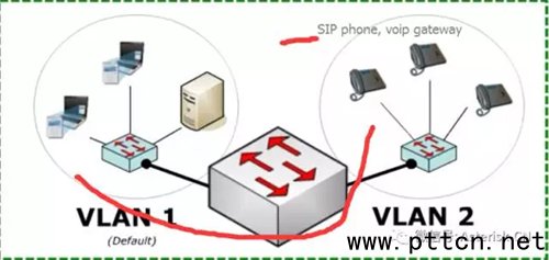 如果網(wǎng)絡(luò)通過VLAN 重新劃分以后,把SIP終端,VOIP網(wǎng)關(guān)重新劃分,這樣的話,就可以保證語音和其他數(shù)據(jù)服務(wù)各自獨立。VLAN 1 包括了辦公電腦和其他設(shè)備,LAN 2 包括了SIP終端和VOIP網(wǎng)關(guān)等設(shè)備。