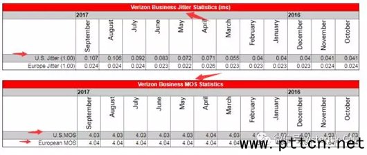 為了保證用戶有足夠的網(wǎng)絡(luò)環(huán)境來部署VOIP,運營商也必須提供相應的網(wǎng)絡(luò)保證。以下是美國Verizon運營商提供的服務(wù)數(shù)據(jù),包括QoS和Jitter的統(tǒng)計數(shù)據(jù):