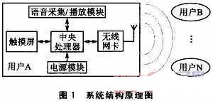 主頁(http://www.130131.com):OMAP5912的嵌入式無線組播通信設計 提出一種便攜式的無線通信系統,它采用OMAP5912作為系統中央處理器,利用Wi-Fi模塊組建Ad-Hoe無線網絡,采用G729a編解碼傳輸語音信息,并利用混音技術實現多方通話功能。測試表明,該系統不需要專用基站,可隨時隨地實現實時語音通信,適合應急通信等無線應用場合。 引言 當前移動電話以方便、快捷的通話特點已經成為人們的日常生活品之一。然而,它需要基站支持。如果處于基站覆蓋區外,用戶就很難進行通信。并且它一般只適合兩個用戶之間通信,這難以適用于應急通信或臨時會議等應用場合。針對這一問題,本文提出一種采用Wi-Fi(Wireless Fidelity,無線保真)傳輸技術的嵌入式系統。它利用Ad-Hoc進行自組織組網,實現多人同時進行通話的目的。該系統不需要專用基站,從而解決移動電話需要專網的不足。 1 系統設計思想 無線多方通話系統是指在同一個系統中允許多人同時進行對話,它不同于常規對講機。對講機只能實現半雙工通信,即發起方在說話時,聽不到其他人的語音。通信雙方時常因為搶話而難以順利溝通。如果多人同時搶話,將造成系統無法正常通信。 為了實現無線多方通話,需要解決兩個關鍵問題:無線局域網的建立、系統語音通信的方法。無線局域網可以采用基于AP方式的組網和基于Ad-Hoc方式的組網;贏P方式的組網需要選擇一個中心節點,它負責轉發和處理下面各成員之間的語音信息。然而,如果該節點失效,整個網絡就會癱瘓,而基于Ad-Hoc方式的網絡內各用戶地位均等,各用戶在彼此覆蓋范圍可以建立對等的通信關系直接通信?紤]到系統的便攜性和實用性,系統采用基于Ad-Hoc方式進行無線組網。 在建立無線局域網后,可以采用RTP協議實現簡單的點對點語音通話。為了實現多方話務系統,還需要采用組播方式。由于無線局域網的有效帶寬有限,為了容納更多的用戶,需要采用合適的語音編解碼算法以降低各自帶寬的需求。語音編碼一般分為三種類型:波形編碼、參數編碼和波形參數混合編碼。波形編碼的語音自然度高,但是壓縮效率比較差,常在32 kbps以上。參數編碼特點是語音壓縮效率高,但是自然度比較差,能夠在極低速率進行編碼。而波形參數混合編碼結合了以上兩者的長處,代表算法有G.723、G.729等,能在4~16 kbps的速率上進行高質量的語音合成?紤]到算法的復雜度和對語音的需求,這里選用適合嵌入式應用的G729a算法。接收方接收到多個用戶的語音信息后先進行相應的語音解碼,然后采取混音技術實現實時接聽多人話音。 考慮到系統的便攜性以及系統開發的難易程度,選擇Linux2.6操作系統作為軟件開發平臺,以TI的OMAP5912作為中央處理器,利用無線網卡組建Ad-Hoc網絡,利用Qt技術實現圖形界面顯示和系統控制。最終完成在局域網內進行多方話務通信的功能。 2 系統硬件設計 本系統結構如圖1所示。該無線局域網內有N個用戶,其中N的取值范圍為[2,253]。每個用戶的系統架構相同,它包括語音采集/播放模塊、觸摸屏、無線網卡、中央處理單元和電源模塊。