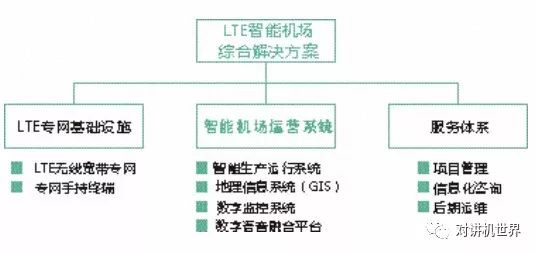 例如,現有絕大部分機場的IT系統僅僅采用有線網絡,無法將業務延伸到生產作業流程中的各個步驟和每個檢查點,這樣,就缺乏了全面的站坪監控手段。此外,各類業務難以在綜合網絡中協同運作。例如:把航班計劃、航班動態、航班服務通告廣播給相應的工作人員,工作任務單的無線發送,配載中心向機下裝卸小組發送裝機單和艙單,未登機旅客行李數據發送,人員和車輛的位置實時監控,工作進展和任務執行狀態匯報,大容量的航行情報資料、氣象情報資料、機載電子設備數據的無線傳輸等,這些實時的、可靠的、大規模的、密集用戶的無線數據傳輸需求是一般的通信系統無法滿足的。 LTE技術作為國際主流的第四代無線通信技術,確保無線專網系統可獲得長久的生命力,既能滿足目前階段的需求,也能滿足未來大容量機場數據的傳輸需求。同時,LTE技術高帶寬、低時延、大容量的特性,也可充分保證飛機起降過程中的數據包傳輸。 為了最大程度匹配民航需求,烽火針對機場業務及其場景特點,為了解決機場運營方生產調度效率問題,保障機場生產安全,向機場民航客戶提供從網絡設備、智能機場運行系統到機場運行服務體系,一整套的LTE智能機場綜合解決方案。 如下所示: