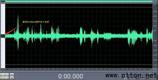 圖4-2 截取的200ms噪聲部分音頻 在競品分析時,可用不同競品之間的非噪音差減去噪音差,若差值大于0,則可以認為噪聲抑制效果較好。 注:我們定義播放音量的級別分別為:小音量=30%,正常音量=50%,大音量=70%。