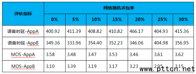 圖2-1 2.2 網(wǎng)絡(luò)環(huán)境模擬 VoIP決定了對網(wǎng)絡(luò)的強依賴性,因此需要評定在不同網(wǎng)絡(luò)狀態(tài)下的語音質(zhì)量的各項指標。這里推薦使用網(wǎng)絡(luò)模擬軟件 Network Emulator Toolkit 模擬網(wǎng)絡(luò)丟包、抖動等網(wǎng)絡(luò)異常情況。在電腦上安裝網(wǎng)絡(luò)模擬軟件,然后將電腦網(wǎng)絡(luò)作為 WiFi 熱點(可以使用 360 隨身 wifi 等工具實現(xiàn)),測試機連接熱點 wifi,通過設(shè)置不同的參數(shù)實現(xiàn)丟包和網(wǎng)絡(luò)抖動等網(wǎng)絡(luò)異常的情況。 網(wǎng)絡(luò)丟包設(shè)置方法:可以通過設(shè)置 Periodic Loss (周期性丟包)參數(shù)實現(xiàn)(如設(shè)置參數(shù)為 10,表示每 10 個包丟一個包,即丟包率為 10%),也可以設(shè)置Random Loss(隨機丟包)參數(shù)實現(xiàn)(Random Loss 中的數(shù)值若填寫0.05,則表示隨機丟包率為5%),一般隨機丟包更貼近真實的網(wǎng)絡(luò)情況。 網(wǎng)絡(luò)抖動設(shè)置方法:可以通過設(shè)置變化的延時 Linear 參數(shù)來實現(xiàn),Linear 設(shè)置項表示在設(shè)置時間內(nèi) period,延時會從設(shè)置的最小值 Min 逐漸變化到設(shè)置的最大值 Max (如設(shè)置 min 為 0,max 為 100,表示抖動幅度為 100ms),也可以設(shè)置Normal Distributed 的參數(shù)來模擬。 2.3 音頻文件以及分析工具的選擇 分析音頻的軟件有很多,本文采用Cool Edit Pro,方便易用。將音頻文件在Cool Edit Pro中打開,可以看到音頻是否滿足測試條件,例如,在音質(zhì)測試時,要保證波形適中,振幅分布均勻。 由于 PESQ 算法的特殊性,對聲音源文件的選擇有一定的要求。 1. 源聲音文件的長度在6s~8s之間,過長或過短都會影響計算結(jié)果。 2. 靜音區(qū)和非靜音區(qū)的比例要適中,盡量保正[非靜音:靜音=6:4 ]或 [非靜音:靜音=5:5 ]或[非靜音:靜音=4:6 ]。使用 PESQ 計算 MOS 分時,要用純凈的不帶噪聲的文件。 3. 使用 Cool Edit Pro 錄音時,應(yīng)保證輸出的波形適中,可通過調(diào)節(jié)音頻播放音量和 PC 錄音音量來控制。 3 測試指標以及測試方法 3.1 音質(zhì)(QV) 音質(zhì)(Quality of Voice)是指經(jīng)傳輸、處理后 音頻信號的保真度,是對音量音高、音調(diào)、音色等一些列影響因素的綜合評價。本文所用的音質(zhì)的測試方法,是利用python的音頻插件pyAudio來輸入源文件以及錄制輸出音頻,通過國際通用的PESQ(Perceptual evaluation of speech quality)算法來對比兩個輸入和輸出的音頻,最終計算出MOS(Mean Opinion Score)值。以上整個過程都是通過腳本完成,避免了人工參與引入的誤差。如1.1中的示意圖連接好設(shè)備后,兩臺手機通過AppA進行通話,通話過程中執(zhí)行腳本,腳本中一些變量的值,例如執(zhí)行次數(shù)、采樣率、Delay時長等都可以根據(jù)測試對象的實際情況進行靈活調(diào)整,以盡量找到測試對象的天花板。 3.2 語音時延(DV) 語音時延(Delay of Voice),兩個移動終端進行通話過程中,主觀感受的時延是指輸出音頻的時間減去輸入音頻的時間,即被叫聽到聲音的時間減去主叫發(fā)出聲音的時間。DV過大,比較容易出現(xiàn)響應(yīng)遲緩、或者雙講的情況,非常影響通話體驗。本文中對DV的測試方法是,如 1.1 中的示意圖連接好設(shè)備后,兩臺手機通過AppA進行通話,通過腳本來計算音頻輸入的時間和錄制音頻的輸出時間,這個過程相比主觀測試,排除了人耳的差異性帶來的誤差,使得測試結(jié)果更精準。通過腳本跑出的時延數(shù)據(jù),取 50~100組延時數(shù)據(jù)算平均值即可。 3.3 噪聲抑制(NS) 大多數(shù)情況下,VoIP通信系統(tǒng)的輸入端不可能接受到純凈的原始語音,只能接受到被背景噪聲干擾后的含噪語音。背景噪聲極大地干擾了語音通信的質(zhì)量,降低了語音的清晰度和可懂性。噪聲抑制(Noise Suppression)的主要目的在于從含噪語音中提取盡可能純凈的原始語音。但是,過度的NS可能會產(chǎn)生降低語音音量等級、處理后的語音中的噪聲不均勻,導(dǎo)致體驗差等的負面效應(yīng)。 如果是分析同一個app不同版本的降噪效果,可以使用語音音量和噪聲音量的Average RMS Power差值進行比對,單位是dB,一般為正數(shù)(語音音量大于噪聲音量),差值越大,NS效果越好。但是,如果要分析不同app的NS效果,PESQ 差距大時,則認為 PESQ 低的 NS 對音質(zhì)的損傷高,NS 效果差(但有噪聲的文件計算出來的PESQ的值并不準確,因此不建議使用該方法),我們要同時考慮到NS的負面影響。因此,當PESQ 差距較小時, 我們定義 d1= RMS(產(chǎn)品 1 的非噪聲)-RMS(產(chǎn)品 2 的非噪聲) d2= RMS(產(chǎn)品 1 的噪聲)-RMS(產(chǎn)品 2 的噪聲) 如果: d1 > d2,則產(chǎn)品1的NS優(yōu)于產(chǎn)品2; d1 = d2,則產(chǎn)品1、2的NS效果基本一致; d1 < d2,則產(chǎn)品1的NS差于產(chǎn)品2。 3.4 音量大。╒V) 音量大小(Volume of Voice)即音頻的強度和幅度。不同的群體對音量大小的適應(yīng)度存在一定的差異性。因此衡量音量的大小要從不同的維度來考量。本文中音量大小的評定是在不同播放音量條件下,播放同一個源聲音文件,同時錄制輸出的音頻,分析不同文件的Average RMS Power,單位是dB,為負數(shù),絕對值越大,音量越小。其中,不同的播放音量大小的定義為: 小音量——30%; 正常音量——50%; 大音量——70%。 4 測試結(jié)果 4.1 抗丟包性能 以5%為步長,從無丟包率逐級遞增到30%的隨