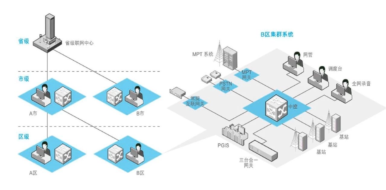 各區(qū)/縣級(jí)集群系統(tǒng)建設(shè)完成后,接入地市級(jí)聯(lián)網(wǎng)中心、實(shí)現(xiàn)地級(jí)市系統(tǒng)互聯(lián)互通;地級(jí)市聯(lián)網(wǎng)中心匯接至省級(jí)聯(lián)網(wǎng)中心,形成區(qū)(縣)、市、省三級(jí)PDT/DMR網(wǎng)絡(luò)結(jié)構(gòu),省級(jí)單位、市級(jí)單位可直接管理到縣/區(qū)級(jí)PDT集群系統(tǒng),實(shí)現(xiàn)全省應(yīng)急聯(lián)動(dòng)指揮網(wǎng)。同樣在智慧城市中,可實(shí)現(xiàn)不同單位和部門的PDT/DMR集群連接到地級(jí)市指揮中心。 (中國(guó)集群通信網(wǎng) | 責(zé)任編輯:李俊勇) |