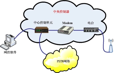 中央站、普通子站和廣播、電視子站的具體組成及其控制器的功能如下。 ☆中央站由中央控制器、計(jì)算機(jī)及網(wǎng)絡(luò)控制軟件等組成,通過無線專網(wǎng)及有線公網(wǎng)對(duì)全網(wǎng)進(jìn)行統(tǒng)一控制。其中,中央控制器由無線電臺(tái)、無線Modem、中心控制單元、天/饋線組成。中央站的組成原理如圖一所示,中央控制器設(shè)備如圖二所示。  圖一、中央站組成