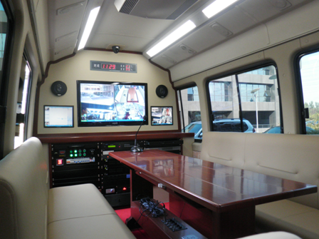 車頂安裝視頻攝像頭,可以將車周邊的圖像實時傳輸至指揮中心。另外,車輛內配備終端設備,現(xiàn)場工作人員通過攜帶McWiLL®多媒體背負式終端設備,在應急通信車信號覆蓋范圍內可以實現(xiàn)移動的視頻監(jiān)控,便于指揮人員隨時了解應急現(xiàn)場各個區(qū)域的實際情況,并且可以通過終端設備所帶的語音調度功能實現(xiàn)與現(xiàn)場人員的實際溝通,隨時調整現(xiàn)場人員位置,指揮人員可以及時了解所需的現(xiàn)場圖像信息,便于前后方的信息溝通和搶險指揮工作。